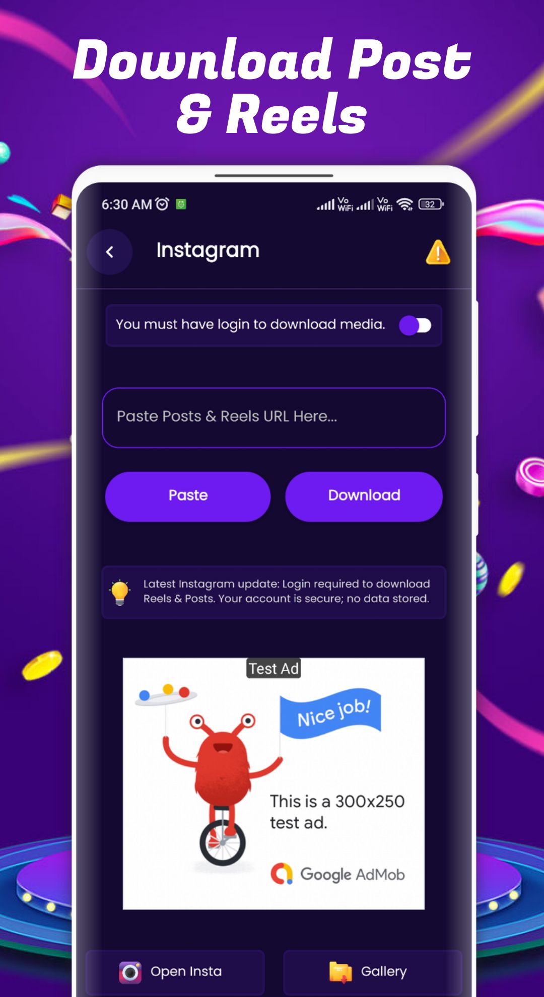 Reels Downloader For Instagram - Android TemplateReels Downloader For Instagram - Android Template