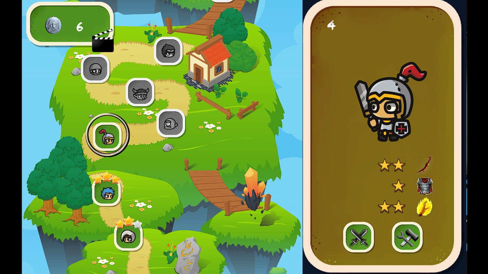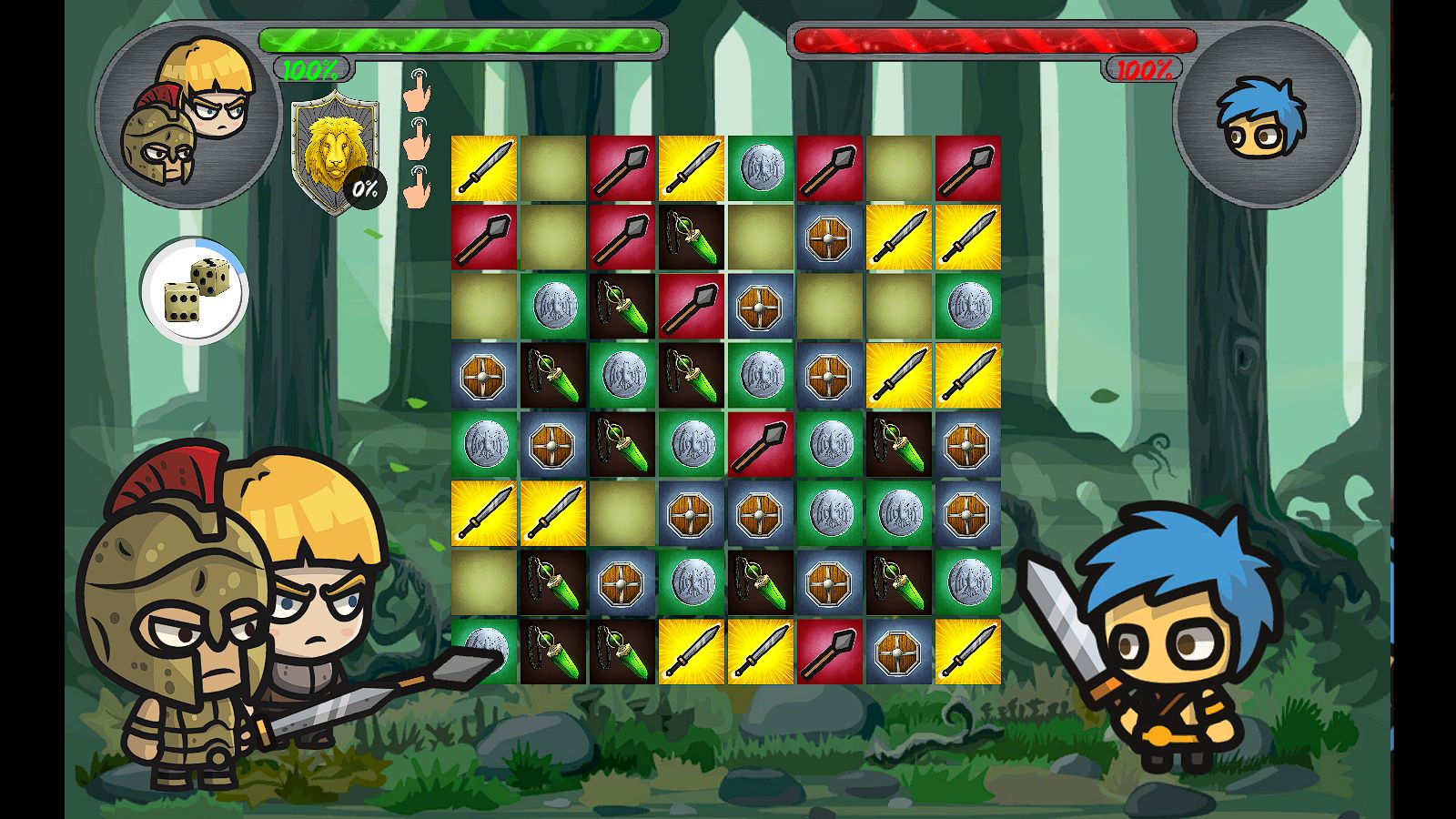 This action/adventure match 3 game has 60 unique levels and enemies. The rules are the same as any other match 3 game. But in this one, you control two mighty and brave heroes who need your help to fight the monsters that are roaming the jungle and have made it unsafe for people! One of them is a knight with sword and shining armor and the other one is a Viking with his mighty hammer. The tiles that you match determines what will happen. Swords will make the knight attack, hammers will make the Viking attack, vials will heal some of your lost HP, shields will block enemy attack when it is fully loaded and coins will earn you coins at level’s end! You have three moves and then it’s your opponent’s turn and the process repeat like this. You have to balance your matches between different options based on the situations that you are in. Between levels, you can upgrade the power of your matches by upgrading each item using the coins that you have earned. And considering that enemies will become more difficult as you progress, you will need these upgrades in order to beat the game and its final boss.
