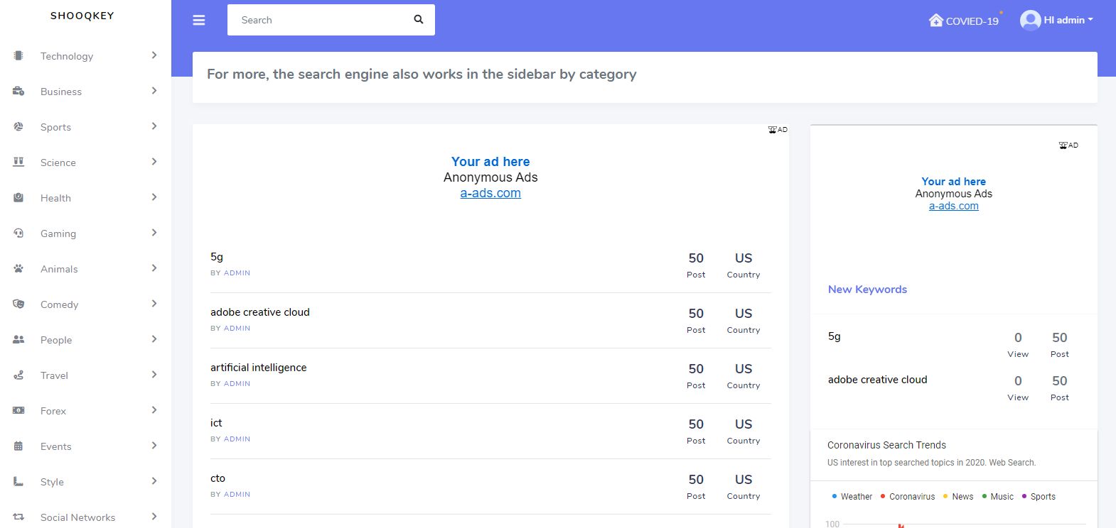 Create Your Own RSS Website Multi-country with which you can read the latest news and view the trend in GoogleShooqKey - RSS Keywords Database