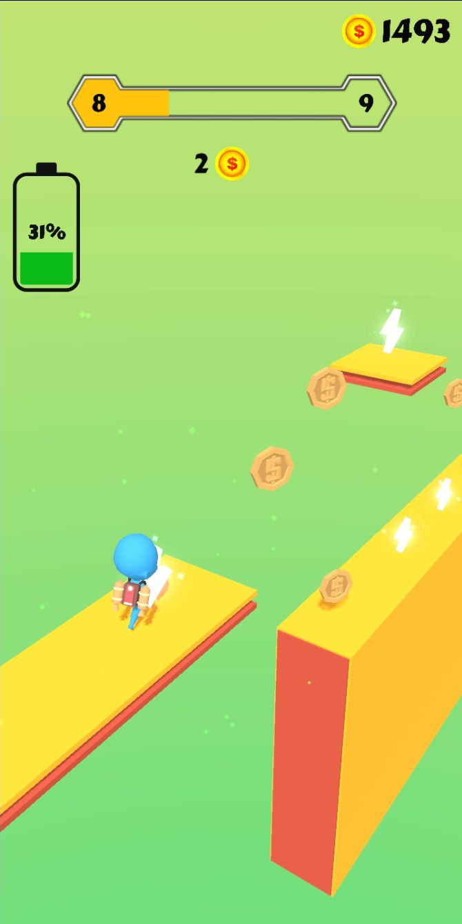 Jetpack Rush dash forward and collect jetpack fuel.Hold to fly rise.Avoid obstacles!