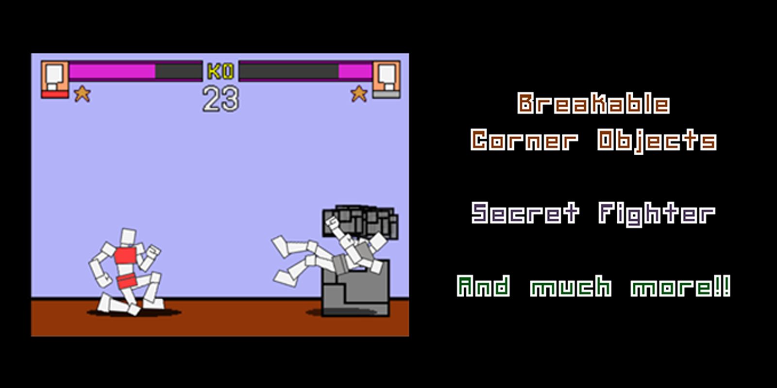 - Complete attack and block system for the fighters, with 2 attacks (punch and kick), including low kick that makes the opponent falls, aerial attacks, and special attacks after entering a combination of keys/buttons;