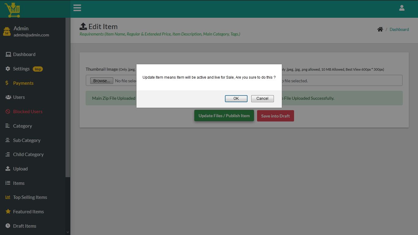 - Mandatory Fields Step - 2 (Thumbnail Image, Preview Image & Main ZIP File)