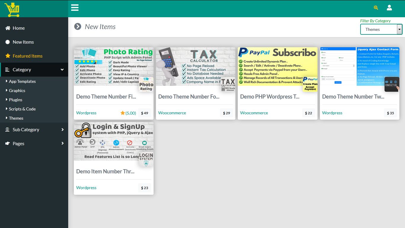 - Filter By Sub Category on Top Right Corner (No Page Reload, Ajax Loading with awesome Loader)