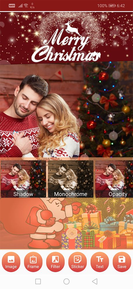 1. Christmas Photo Frame 2. Christmas Photo Video Maker 3. Christmas Whatsapp Sticker 4. Christmas Photo Blender 5. Christmas Glitter Photo Effect 6. Christmas Photo Editor