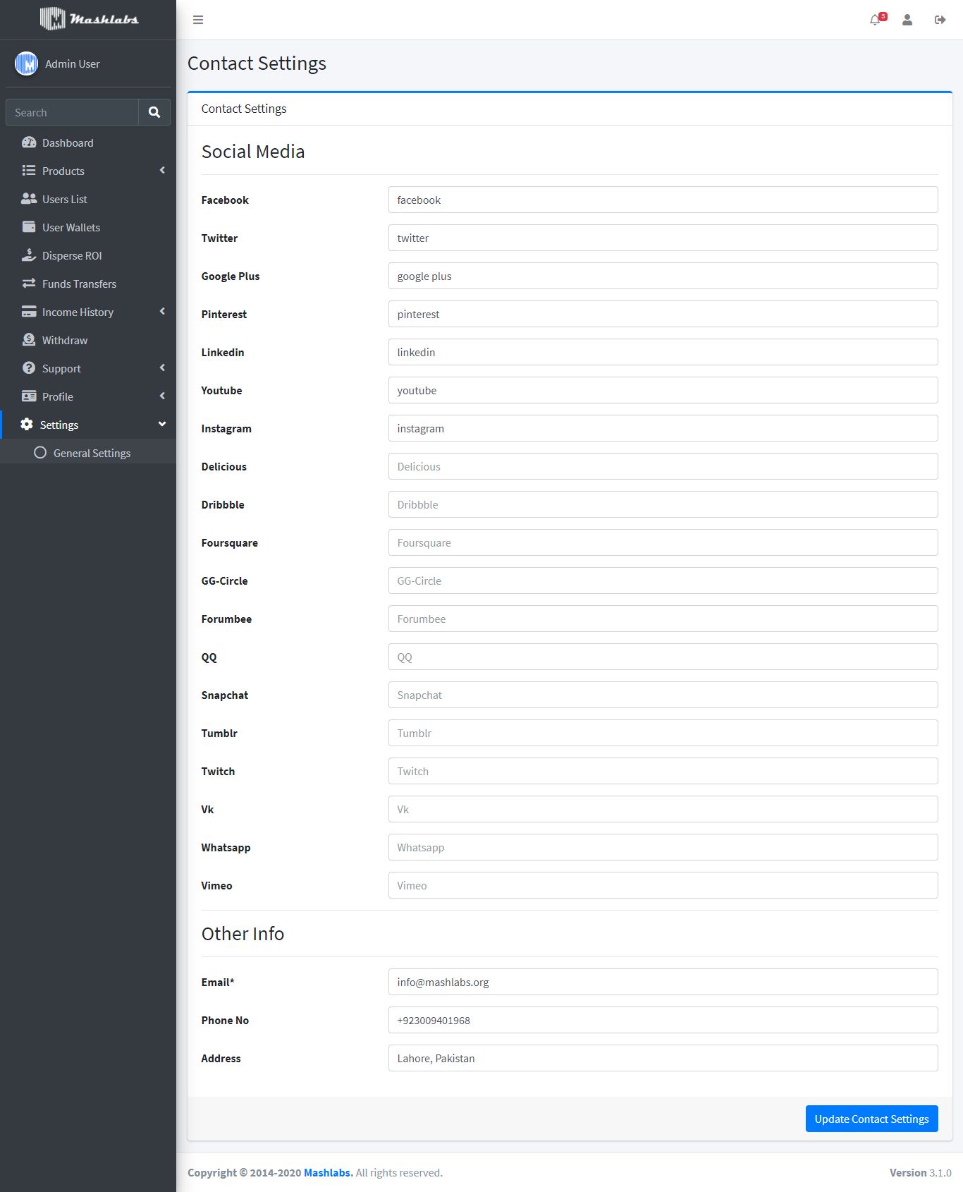 Admin Panel – https://multi-matrix.mashlabs.org