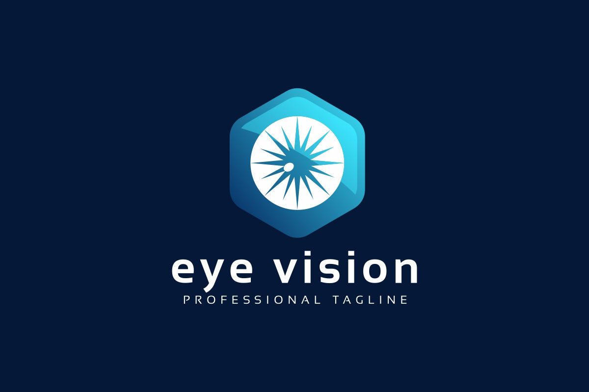 Eye logo in the shape of a hexagon technological logo is suitable for the virtual sphere of business, new technologies.
