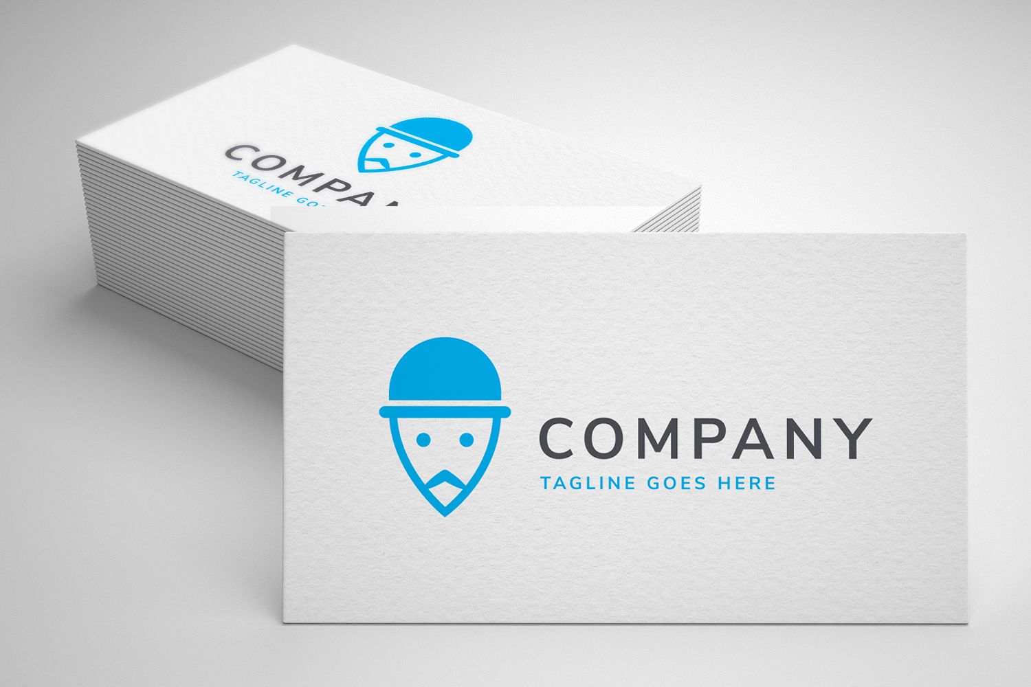 Simple and modern logo of a man's head with a hat shaped like a pin.