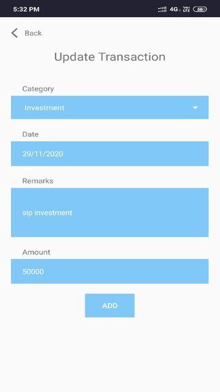 Category wise add your income or expense in app. you can also add/delete category as you want.