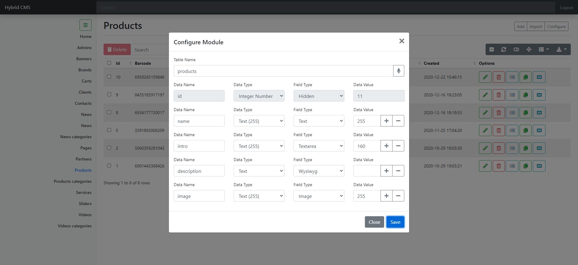 Hybrid CMS is extremely flexible and modular and lets you create your own modules.