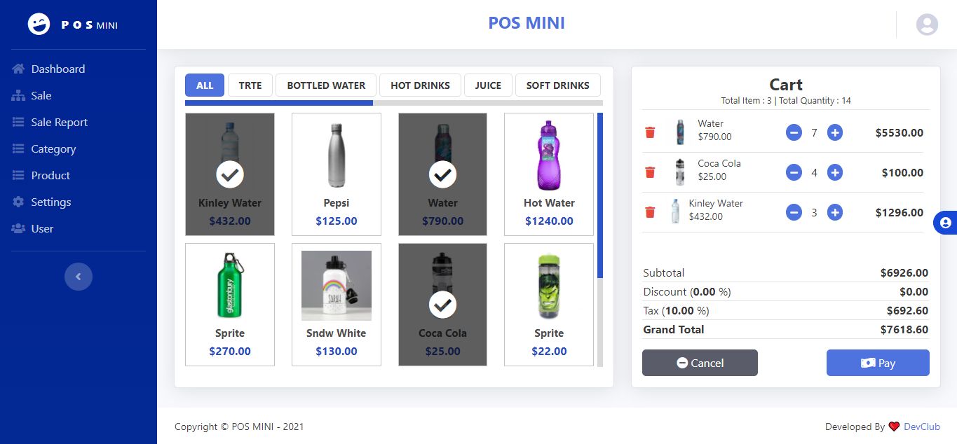 POS MINI – Simple Point of Sale. It has a modern design and a user-friendly UI. It was built by PHP(Laravel 8), Vue JS and MySQL
