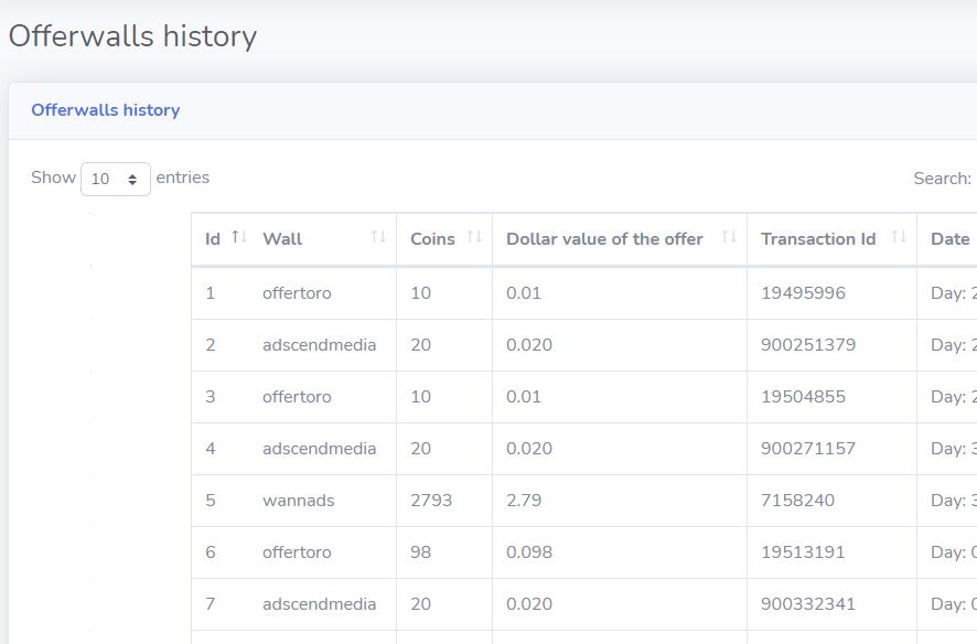 - High earnings paid by offerwalls to admin