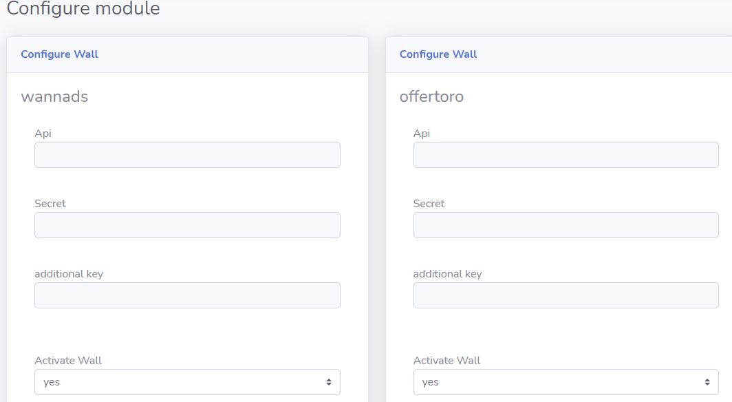 In the admin panel you can configure the offer walls as well as activate or deactivate them at any time..