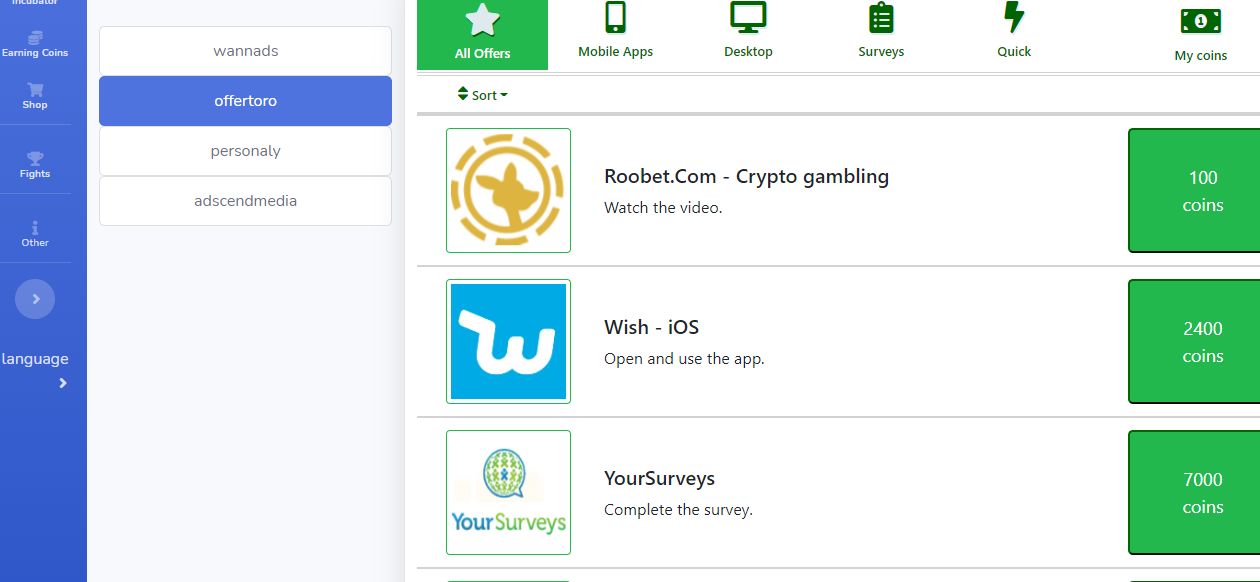 - Coins are automatically added to the user when completing an offer