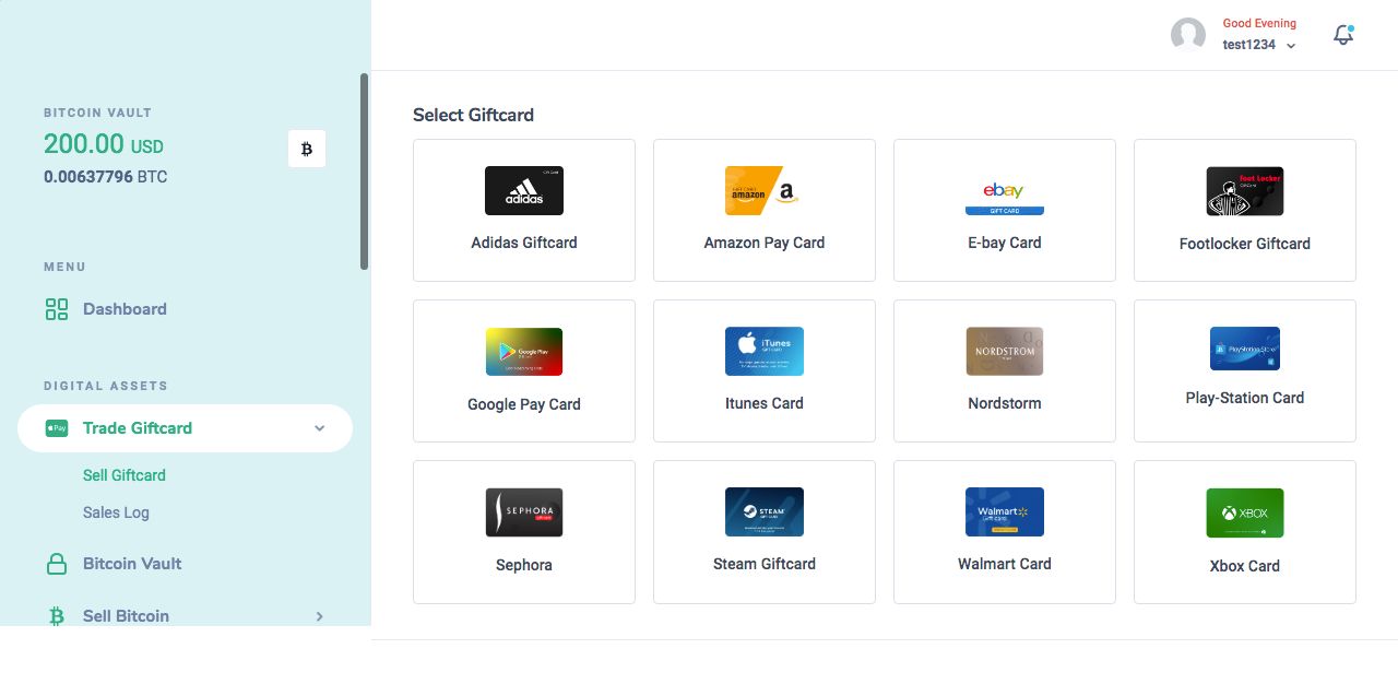 Trade Giftcards, Sell Bitcoin & Store Bitcoin and manage Bitcoin Vaults