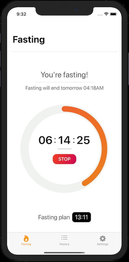 The app gives users the power to track their fast. Whenever you have your last meal of the day, open the app and tap "START" this will start the tracking process and the app will show you when your fast ends, this is the time when you can start eating again. If you go to the settings tab, you can turn on the notifications so you could get notified 30min before your fast ends. Whenever you "STOP" your fast, the app will save this progress and start a countdown for your eating window, this is the time when you can enjoy breakfast/lunch/dinner.