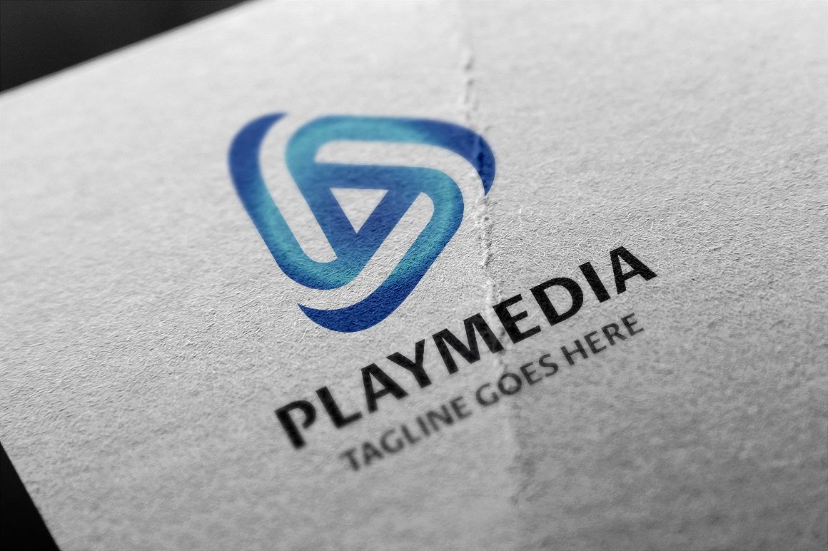 Abstract, colorful logo design which combine three paper clips in shape of a play button. Suitable for businesses.
