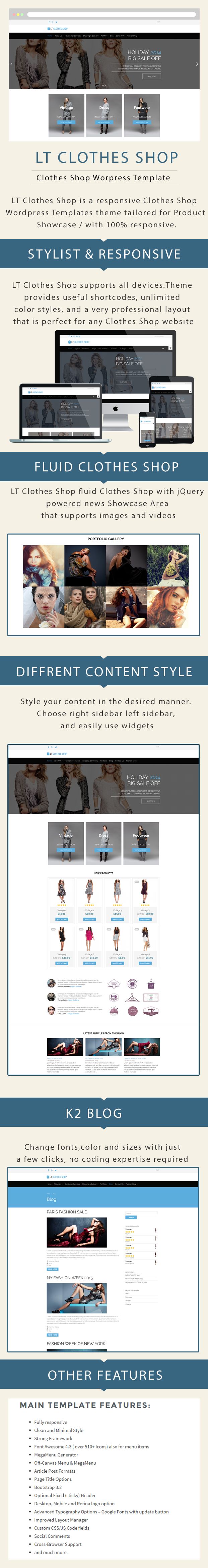 LT Shop is premium responsive WordPress theme tailored for online shopping cart or clothes shop websites.