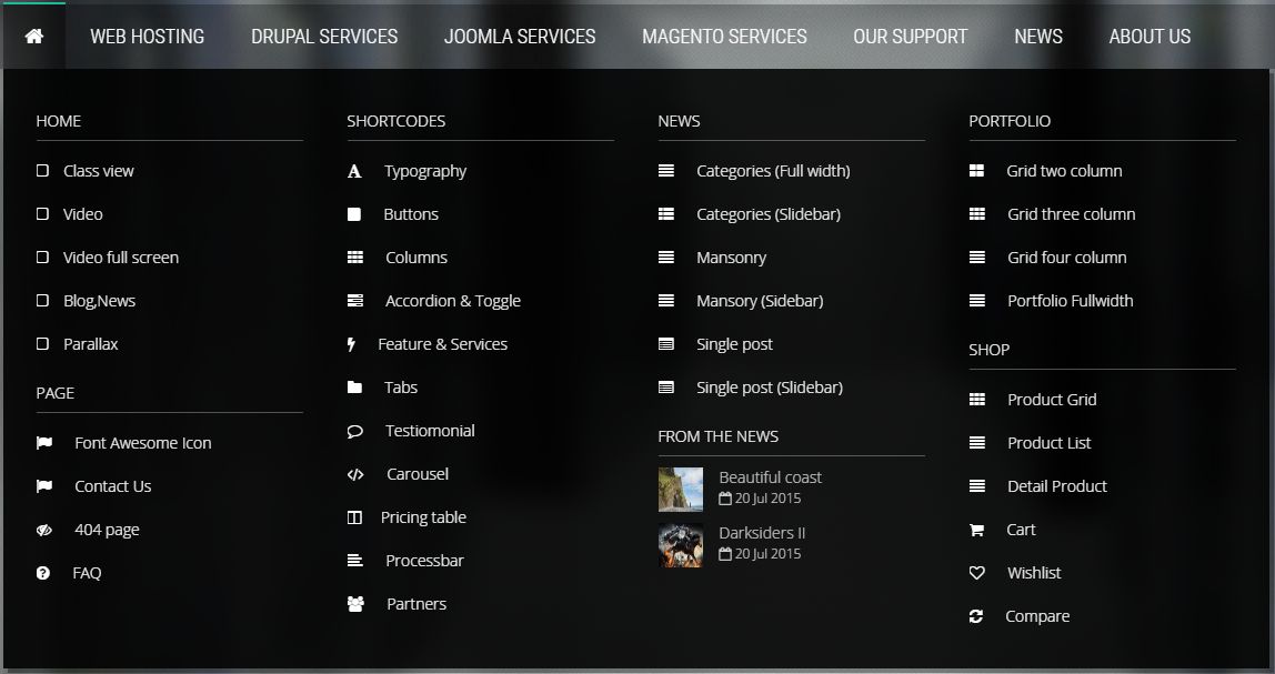 - Beautiful hero slider and touch- enabled, mobile – optimized tabs and sliders.