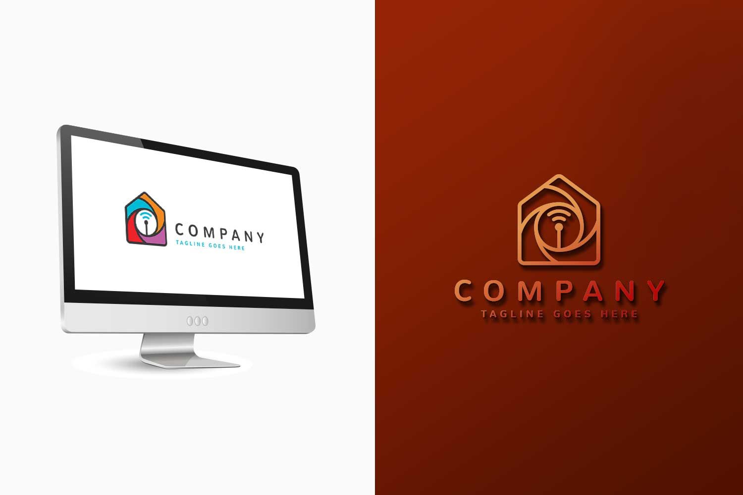 Simple and modern wifi house logo template design for any business.