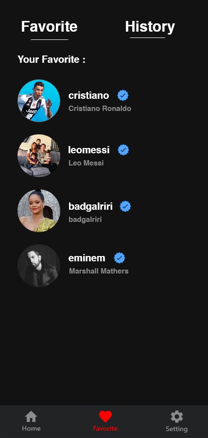 The App save search history, And favorite account show all Photos you was saved .
