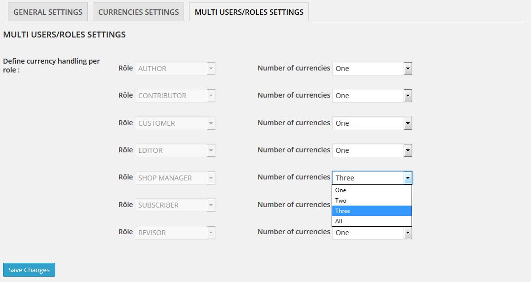 of instant Exchange rates - Specify the number of usable currencies for your different roles
