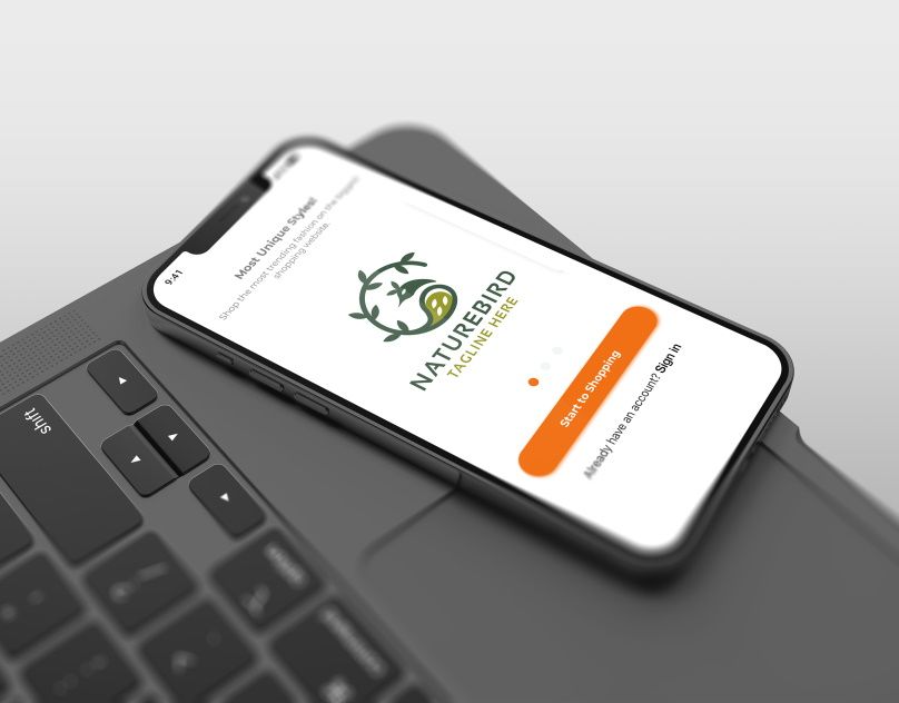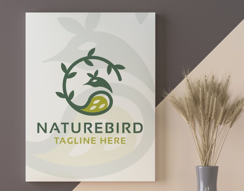 A professional, elegant, clean, simple, modern leaf - birdlogo design. It would be perfect for a bio shop, a nature photographer.