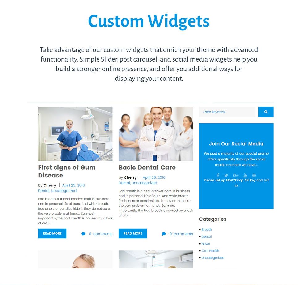 - Notice: Licensed under GPL, this dentist WordPress theme can be installed on an unlimited number of sites for a single price.