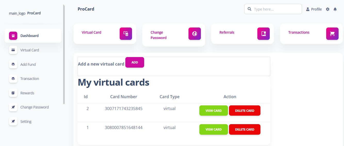 Procard - Virtual Card Selling PlatformProcard - Virtual Card Selling Platform