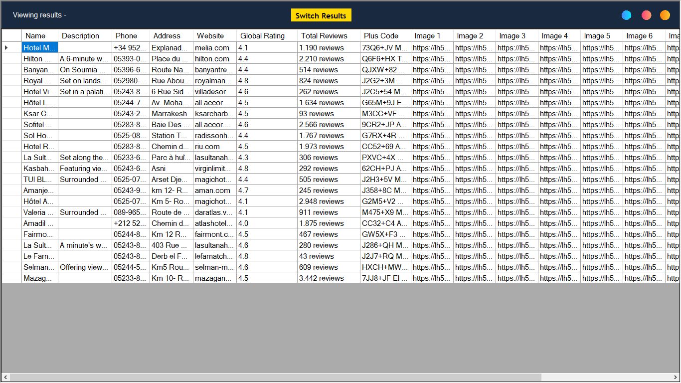 Google Map Business Extractor is an advanced tool to extract business information from Google Map, You can extract the Business Name, Description, Website, Phone, Address, Global Rating, Total Reviews, Plus Code, Longitude, Latitude,Category, Image URLs.
