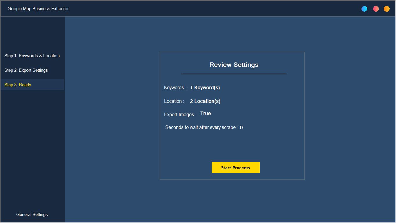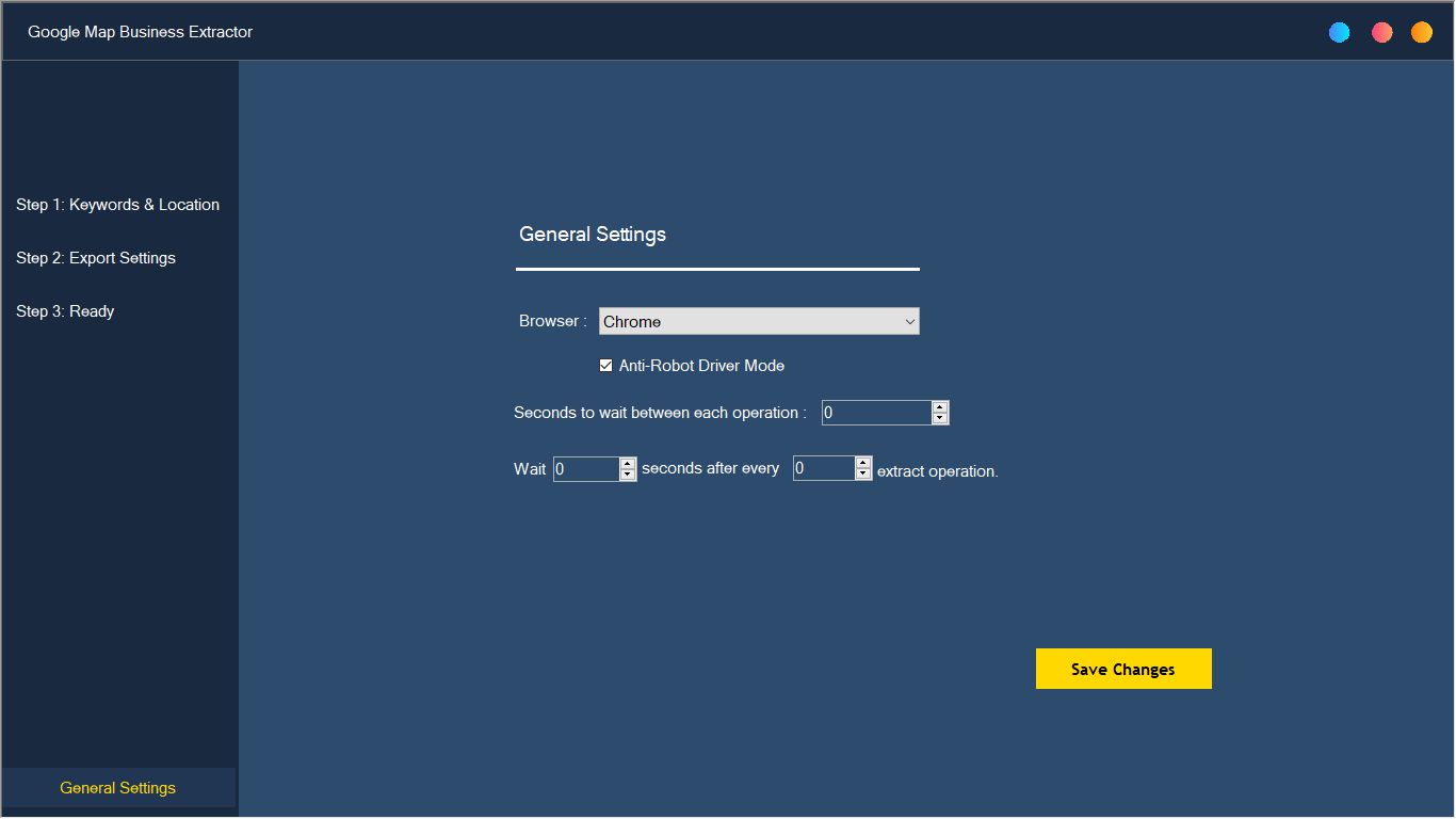 Google Map Business Extractor allows you to set how many businesses you want to extract, just set the pages counts field, and every page contains 20 business, you can also set some advanced settings like set how many seconds to wait after every scrape or extract operation, how many seconds to wait after every X scrape operation, you can set all at 0 to finish the extract process as possible.