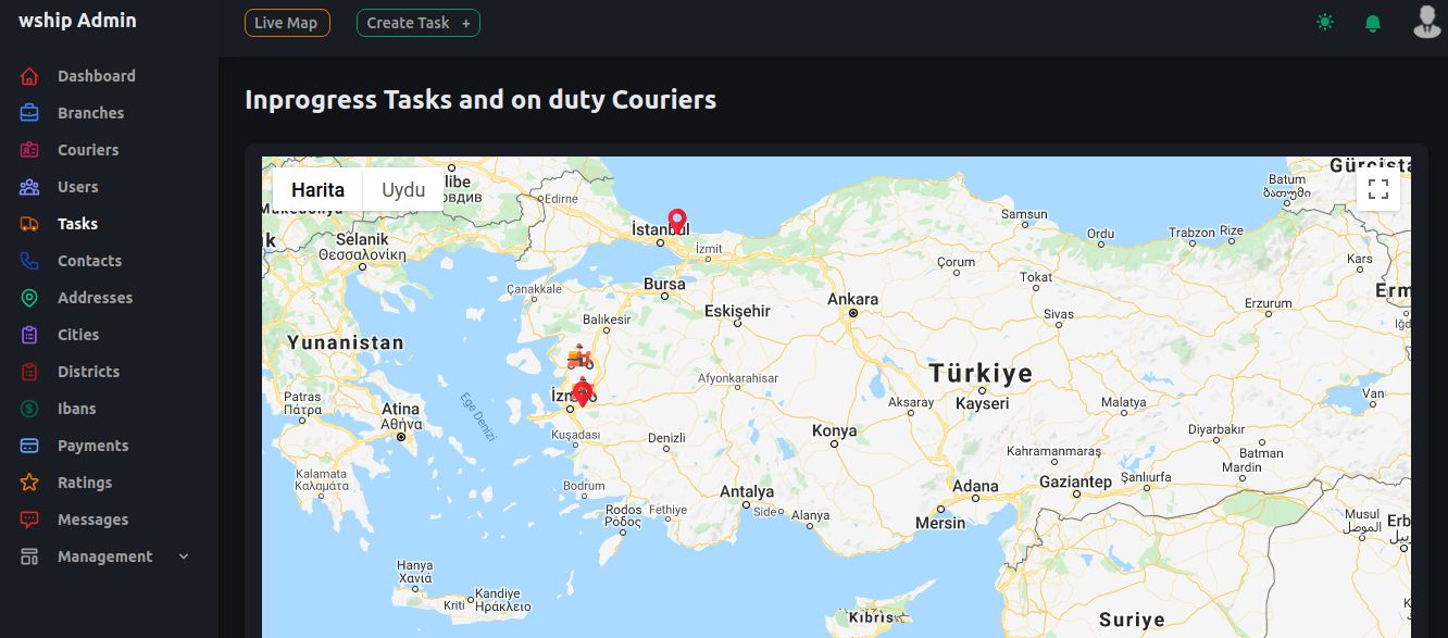 Assign Couriers - Nearest courier to task sender address can be assigned to shipment. (courier should share live location.) Supports push notification to mobile apps.