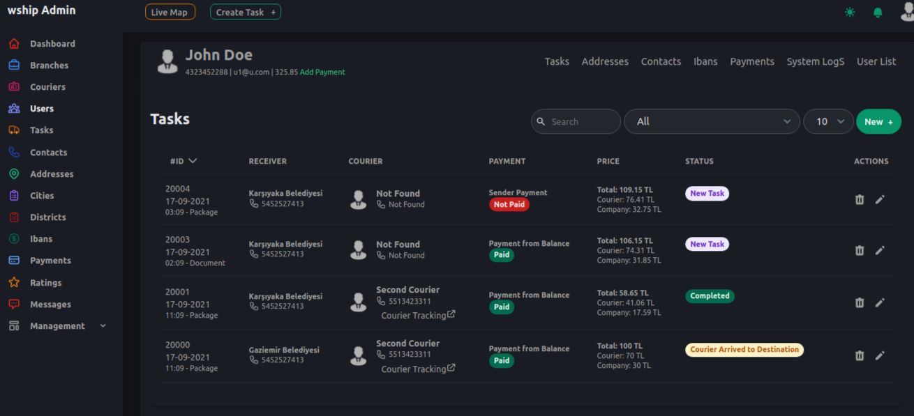 You can easily assign freelance courier to shipments created by customers.WShip - Shipment And Courier Management System