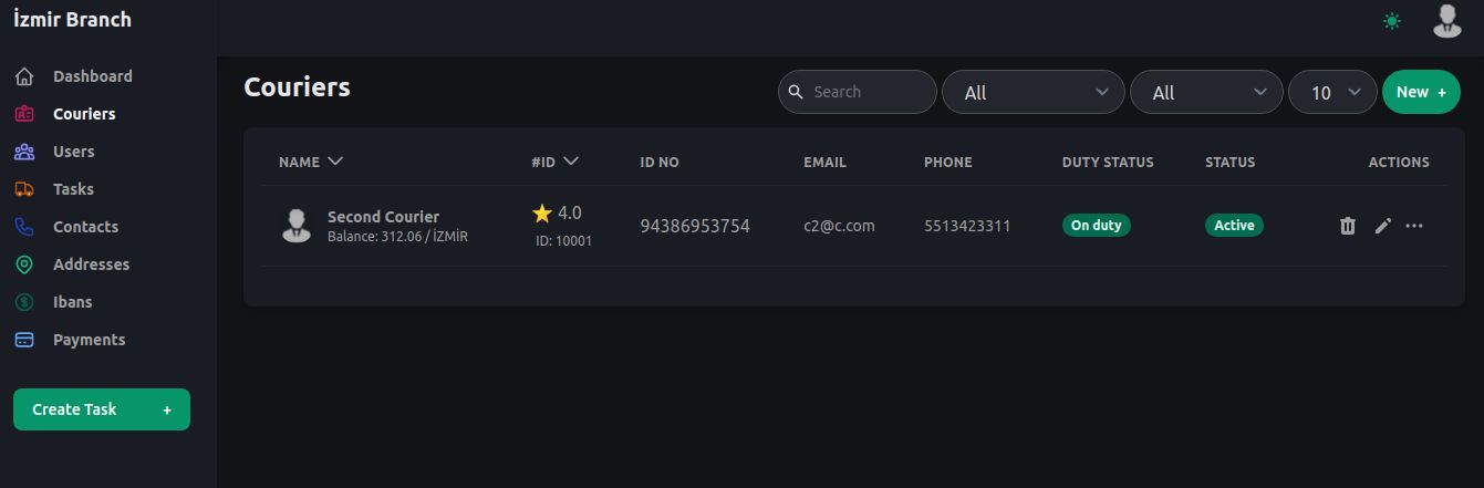 -Admin or branch approve courier registration. (If courier and branch city and disrict are same, branch can see courier.)