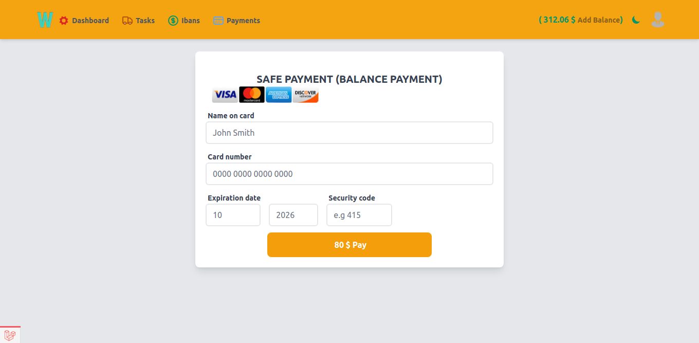 If payment type is Credit Card; user will redirect Stripe payment page and task will be created un paid status. If user payment is successful status will be paid and couriers can see the shipment, otherwise courier can not see un paid task. User can pay anytime if payment is not successful. Then, courier balance will be increased according to the commission rate when the task is completed.