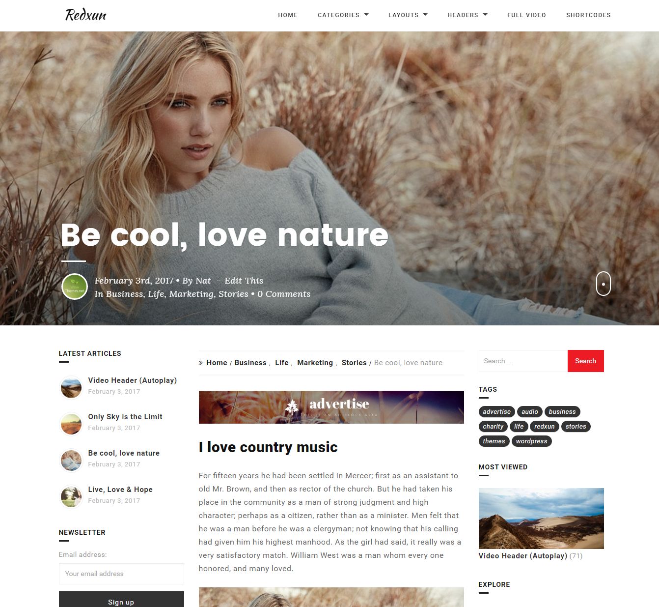 Simply the best theme to keep your readers engaged! Perfectly crafted following WordPress Coding standards, featuring smart navigation areas across all pages that will reduce your website’s bounce rate, different layouts (left & right sidebars, right sidebar or no sidebar), multiple header styles, flexible typography (Google Fonts collection), advertising spaces and many more options, all managed with WordPress Live Customizer, Redxun WordPress Theme is the best choice for a profitable blog.