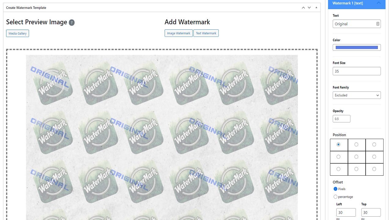 WP Watermark Images is the best WordPress plugin to watermark images. You can add image and text watermarks to your images, apply the watermarks automatically on uploaded images, Apply watermarks in bulk, restore any original image from backups.