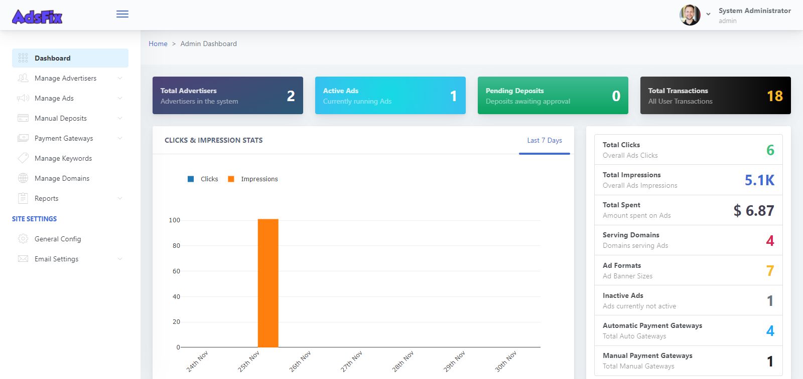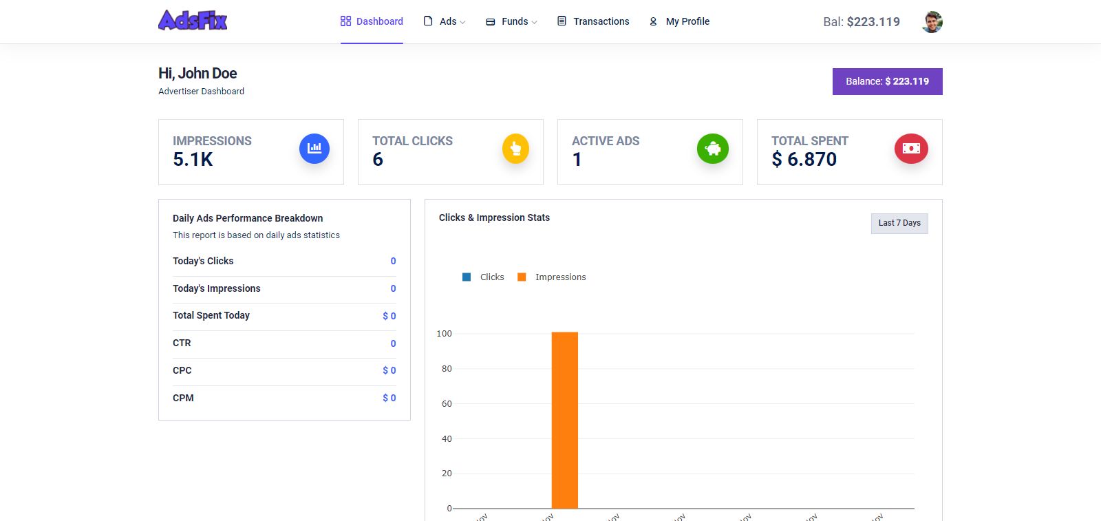 AdsFix is a standalone ads manager. If you are a website owner looking for a way to sell ad spaces to advertisers on your website then AdsFix is the only script you need. Monetizing your content has never been this easy, with adsfix, you can create unlimited ad formats for your advertisers to choose from.