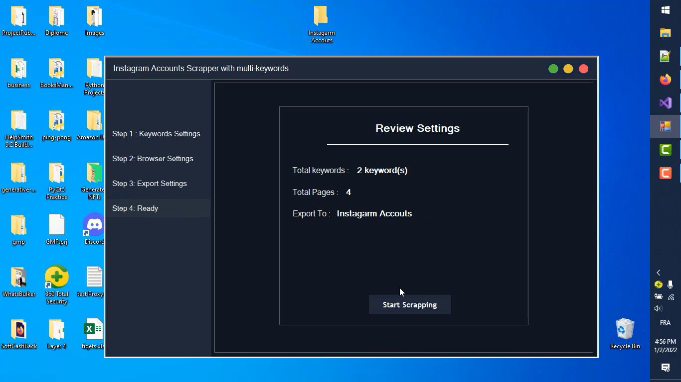 advanced tool that can scrape accounts based on a keywords(Username, Email Address, Phone Number, Username, Total Followers...)Instagram Accounts Scrapper With Multi-Keywords