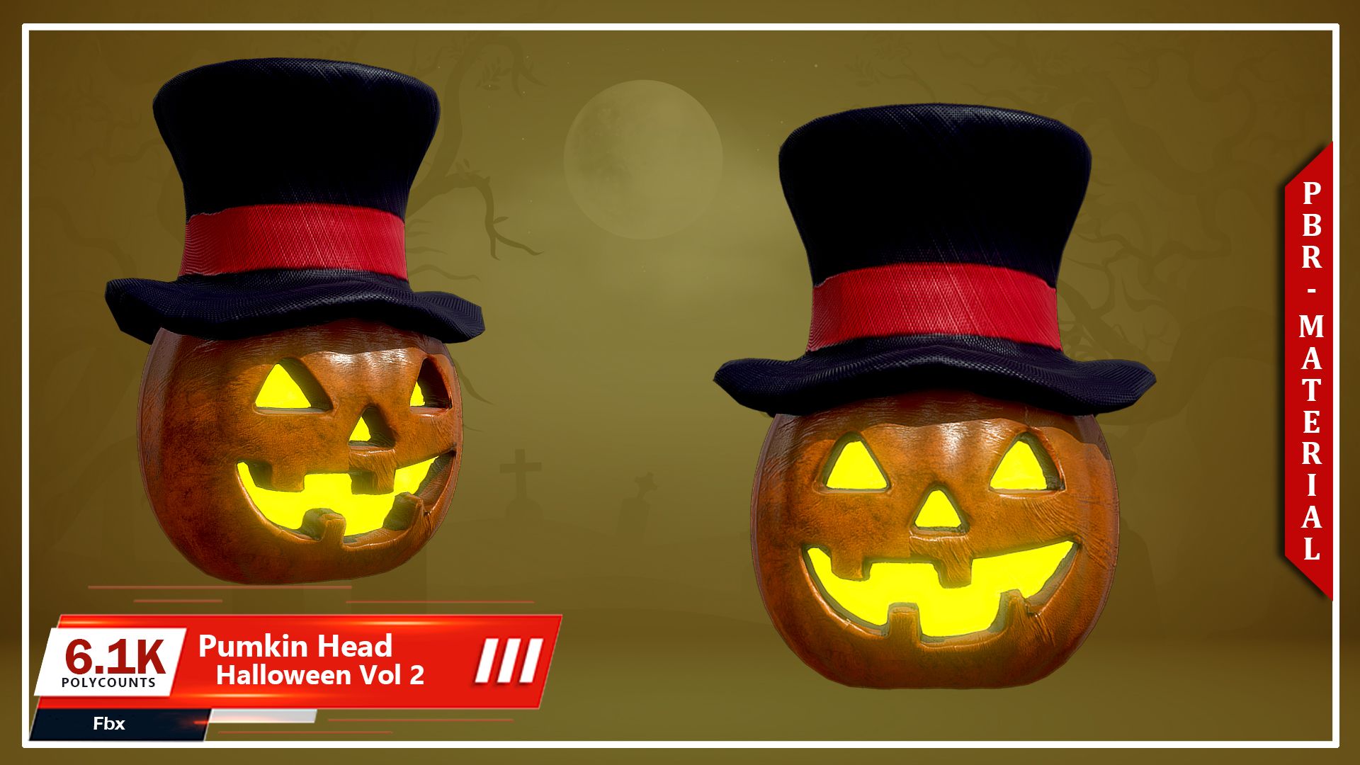 - Halloween Pumpkin Head Vol 1: Vertices: 3.3K, Triangles: 6.5K.
