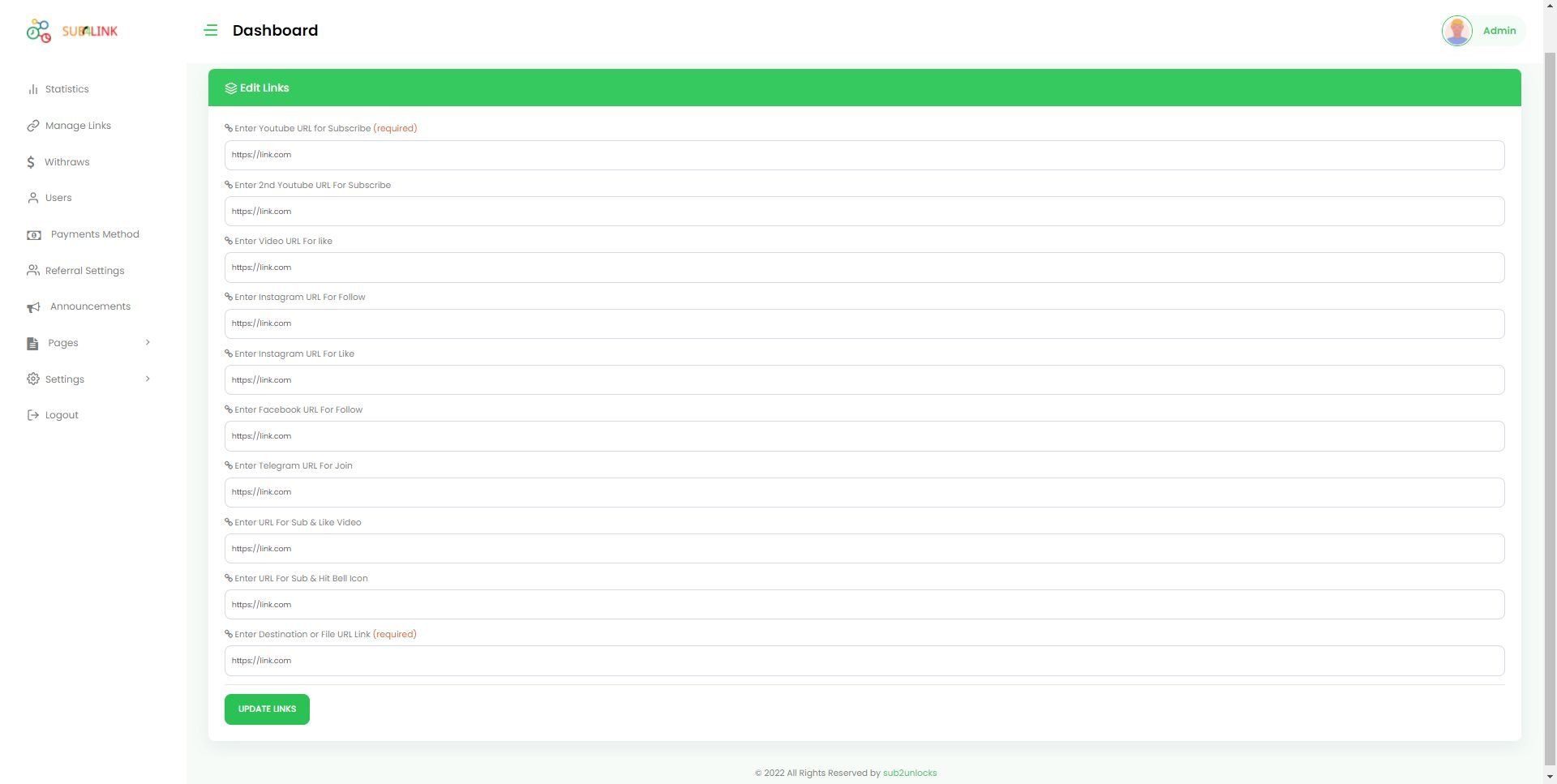 | Tags | admin panel, subscribe, link, earn money, link locker, sub2unlock, subscribe to unlock |