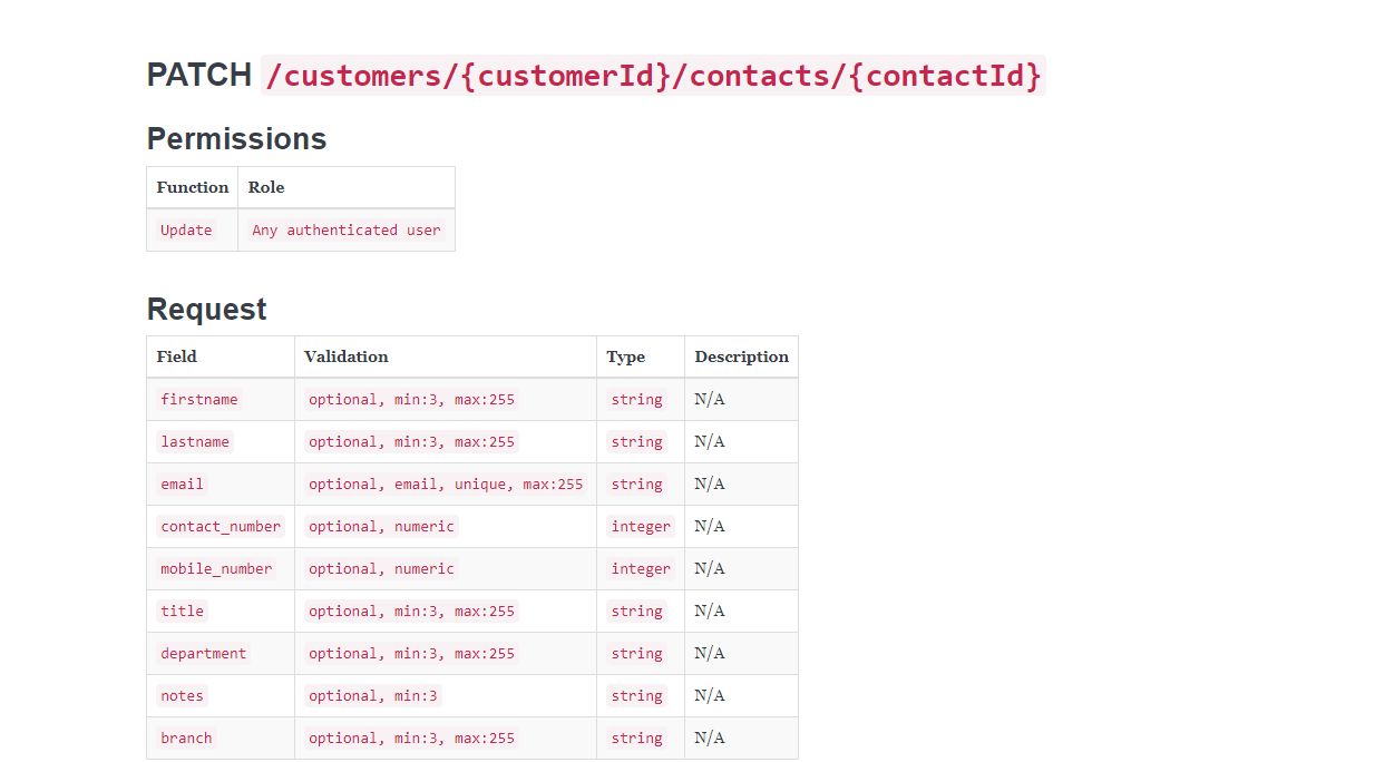 - Customer Contact CRUD functionality.