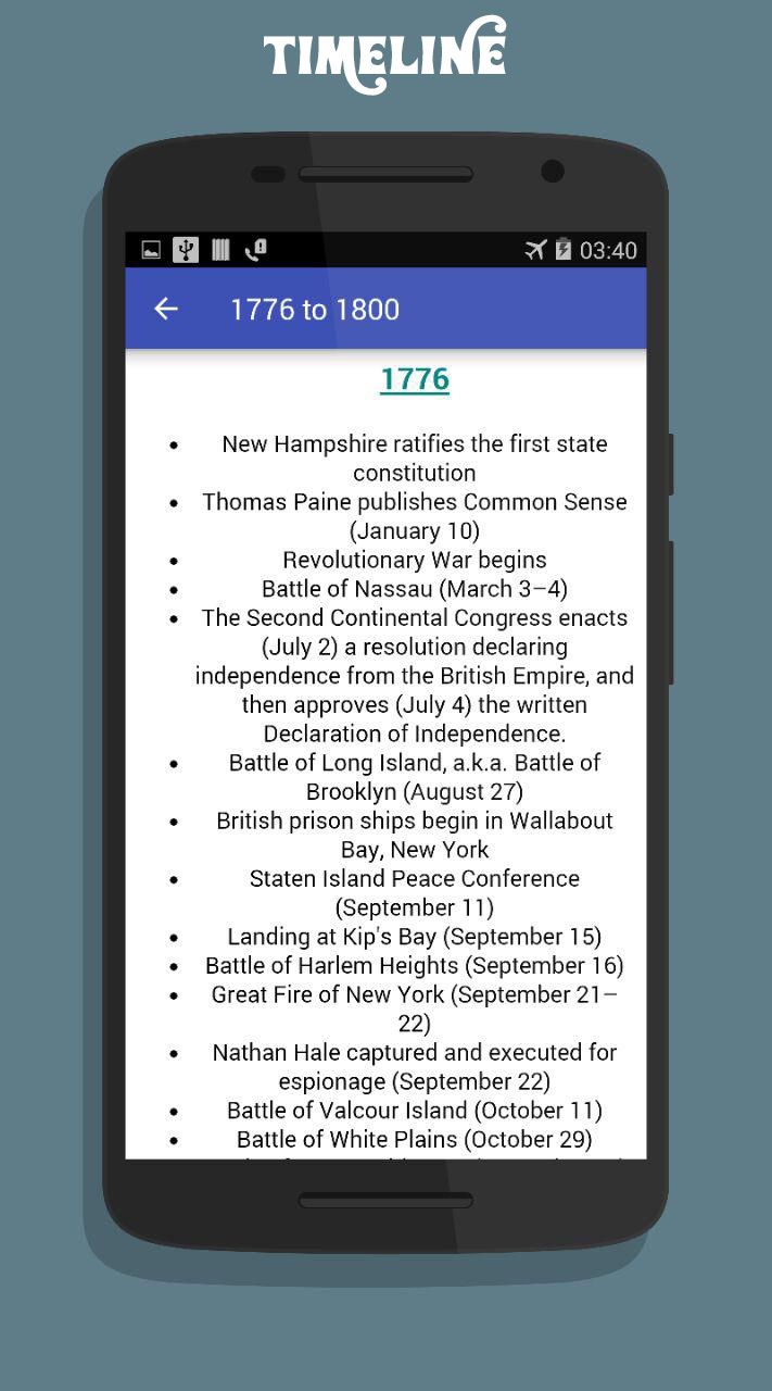 American History : In Depth app contains a large amount of Historical information of United States of America