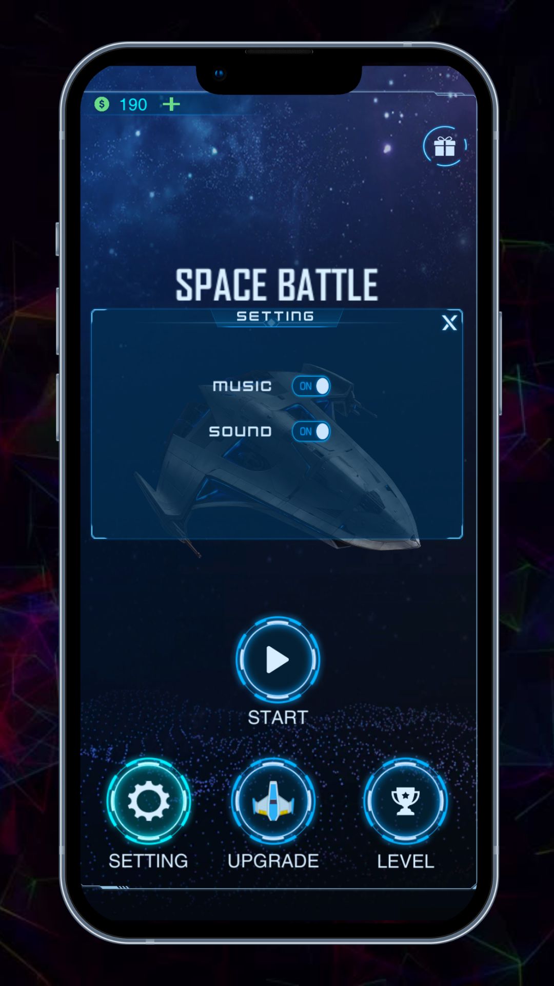 Space Battle is a complete project template. You only need change the advertising ID and publish on Google Play or App Store . The project includes many game features like Admob, Unity Ads. The project use Unity new version (2019.x) so your game has highest performance and support all mobile device generation