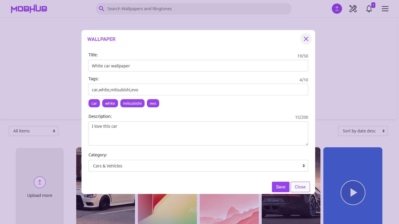 - Upload wallpapers, ringtones and live wallpapers
