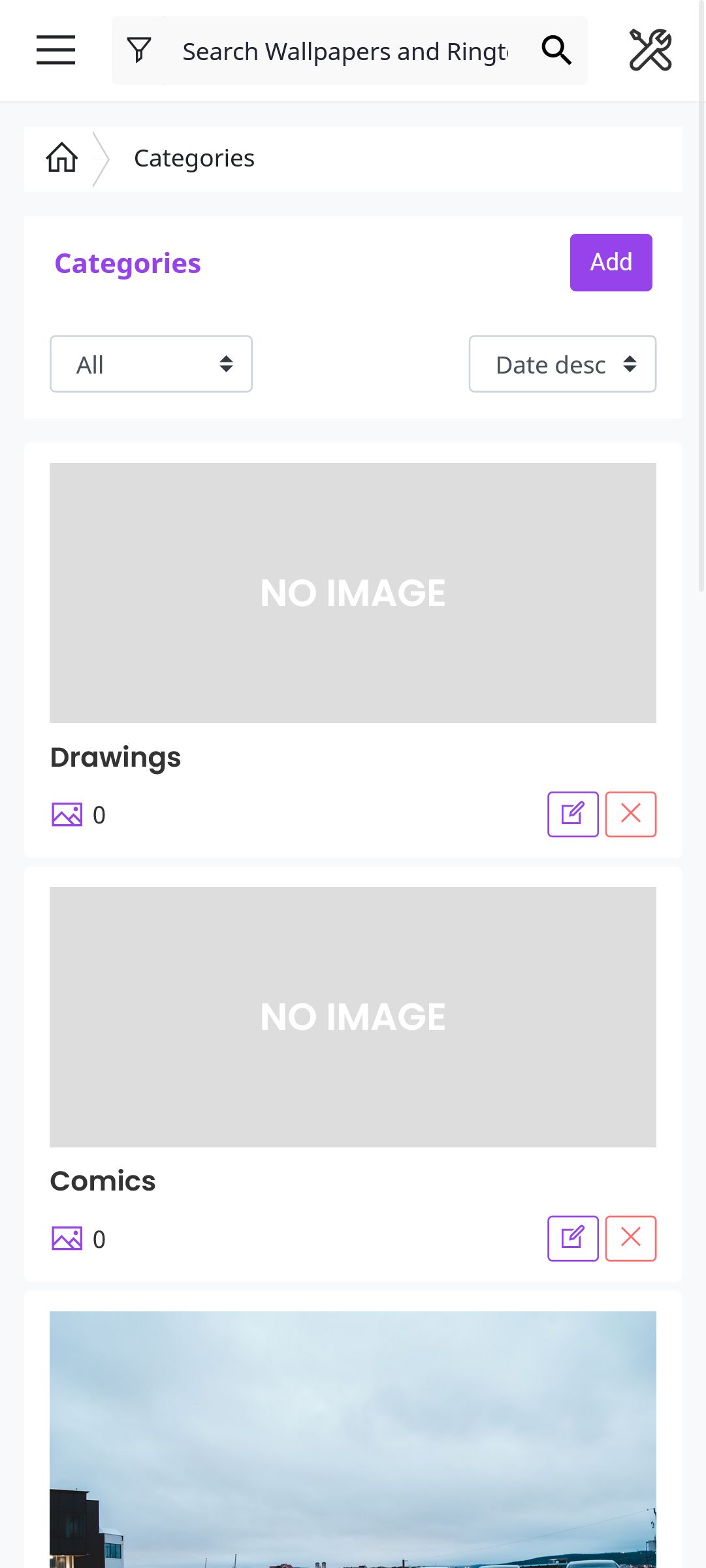 - There are two types of categoris (categories for ringtones and categories for wallpapers)