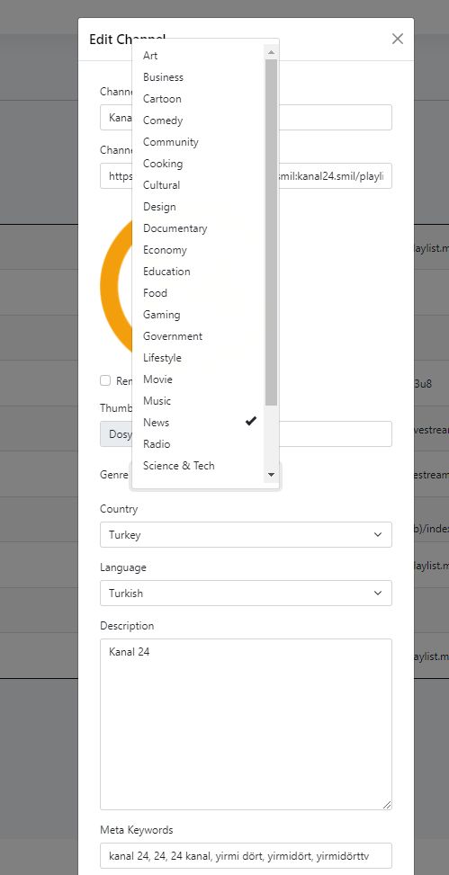 - Dashboard (Total users/channels/genres/languages/countries etc.)