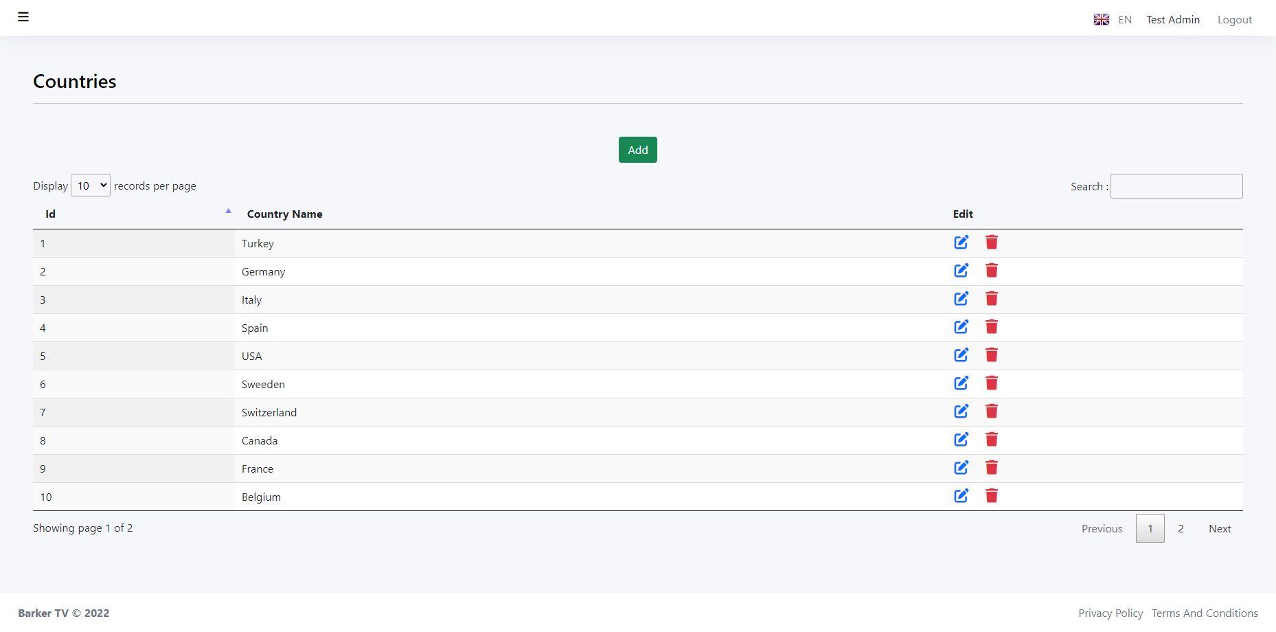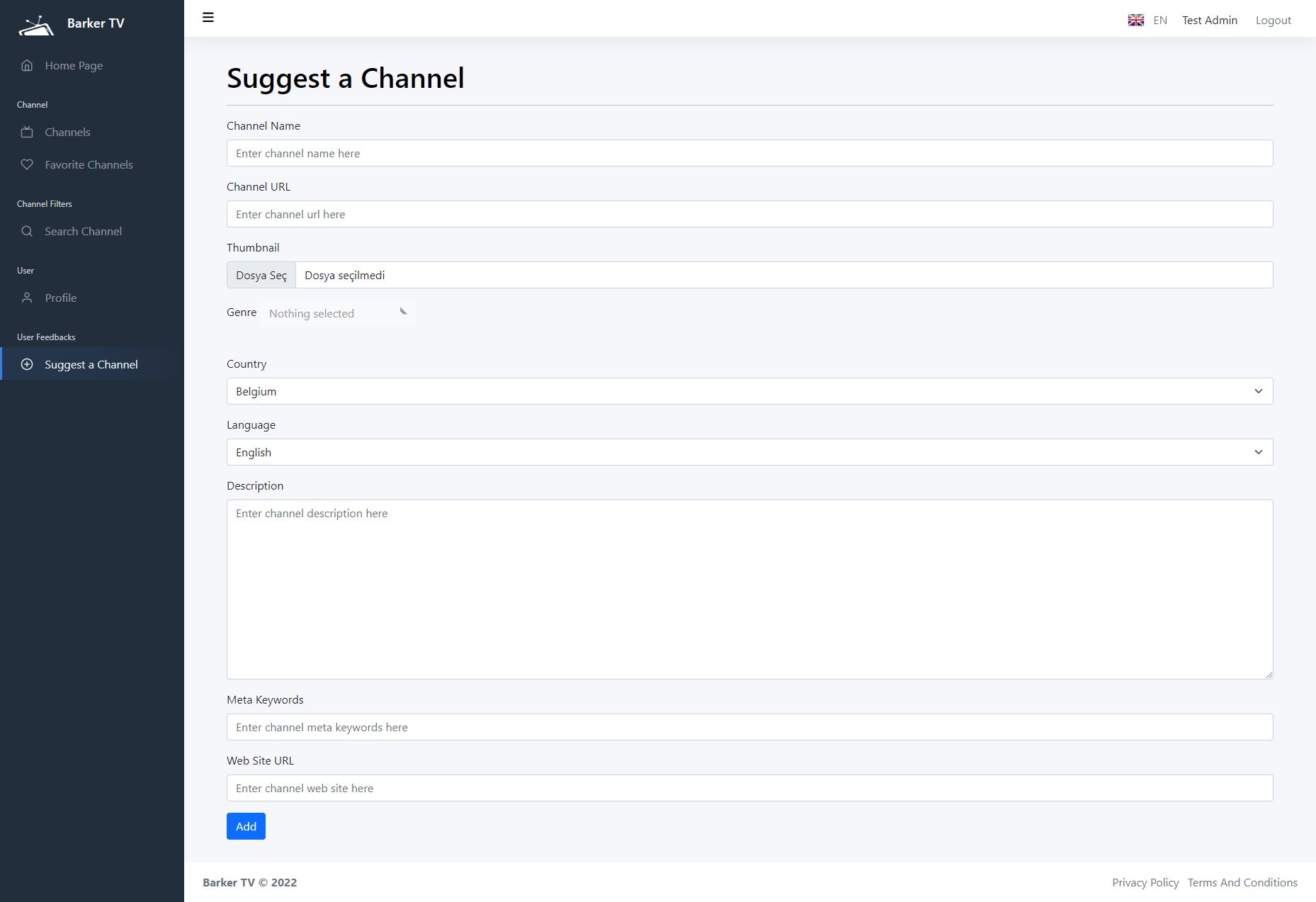 Admin Demo link: http://barkertvtest.matrissoftware.com/panel
