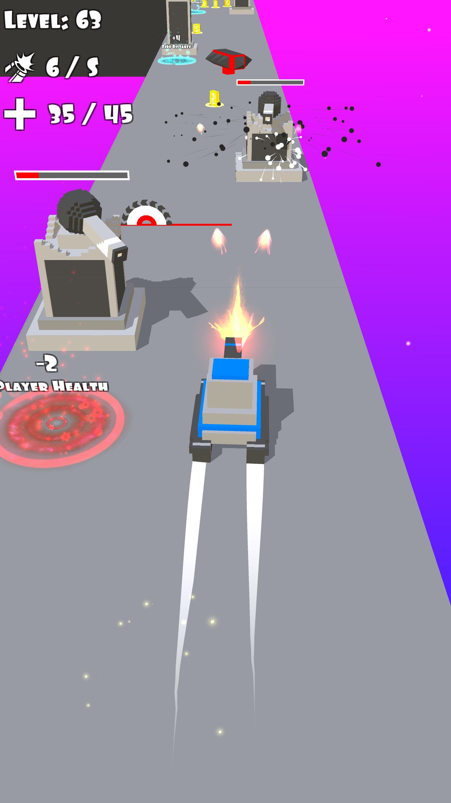 Tower Blasteris an exciting level-base game in which you touch on the screen to control the tank steering left or right while moving forward. Try to shoot down all the towers standing in your way shooting at you, collect boosters to increase fire rate, fire power, health and other stats and shoot down the walls at the end of the path to complete the level. Collects shield to protect you from the obstacles, collects magnet to attract the coins and collects coins to unlock new tanks.