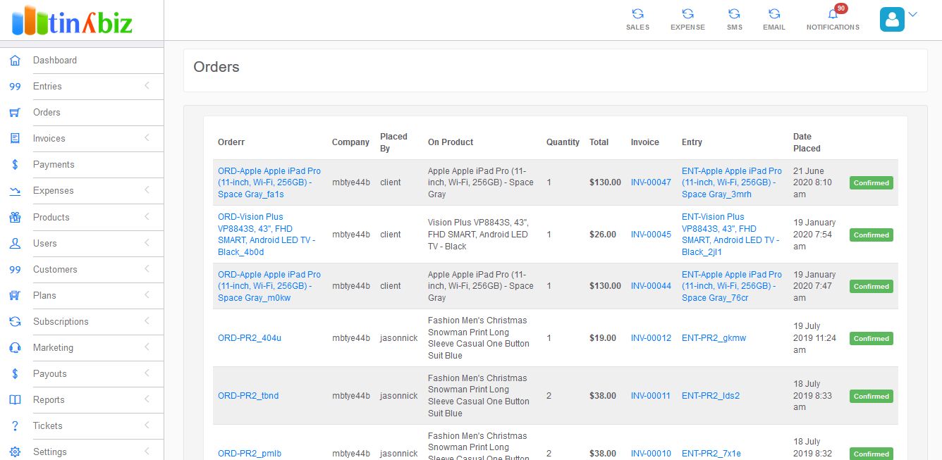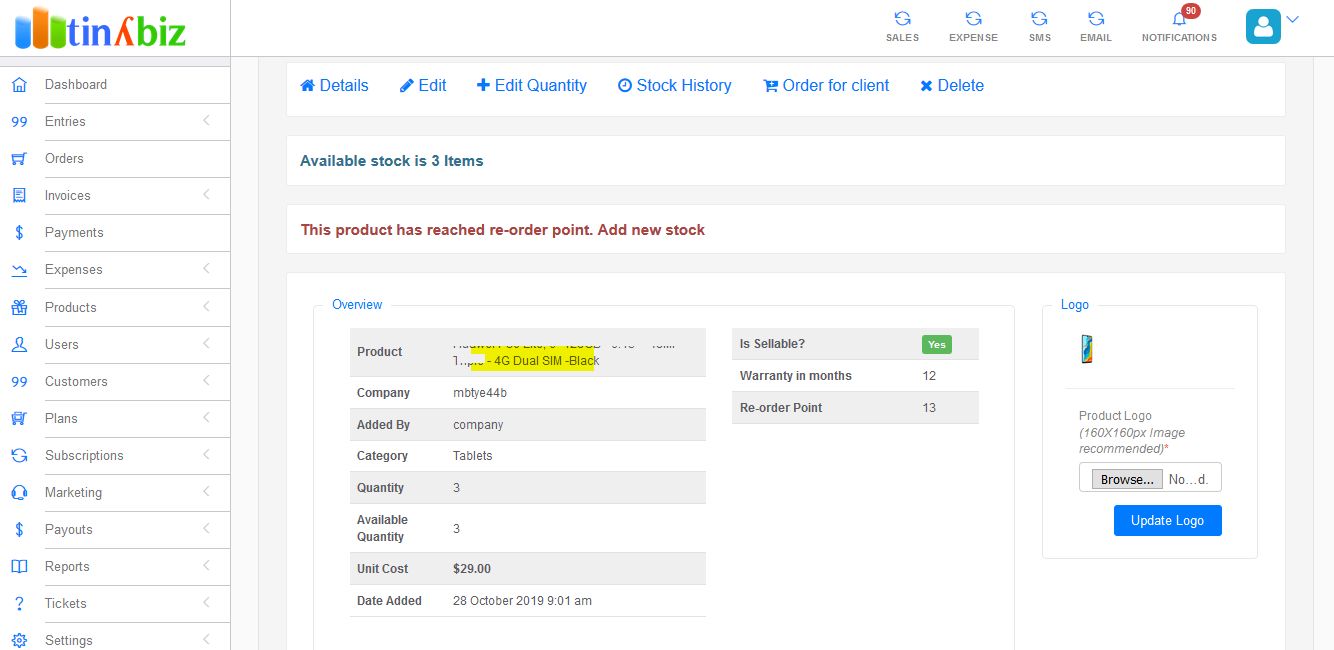 SAAS, Ecommerce, Sales, Expenses, Bulk SMS, Email, Subscription, Packages, Inventory, Stock controltinyBiz - Business CRM SAAS Platform