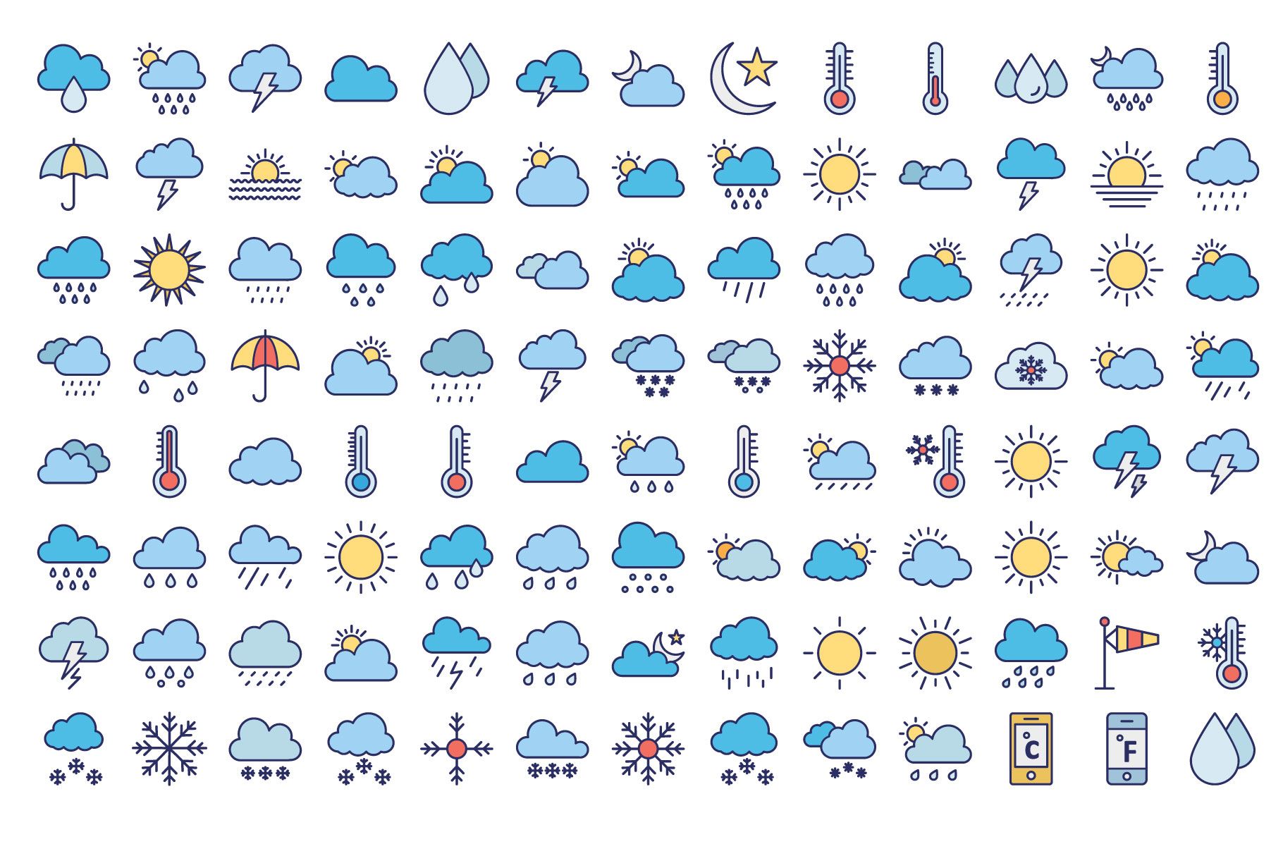 | Tags | vector, sun, temperature, cloud, summer, outline icons, glyph, morning, snowflakes, canopy, line icons, filled icons, glyph icons, Celsius, thunderstorm, weather icons, cloudy night, sunshade, ice flakes, stroke icons |